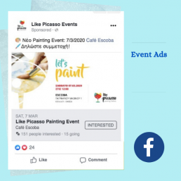 Η Like Picasso είναι μια νέα εταιρία που θέλει να αναπτυχθεί στον χώρο των εκδηλώσεων/μαθημάτων ζωγραφικής σε κοινό που αγαπάει την τέχνη και την έκφραση της. Τα events που διοργανώνει είναι κάτι παραπάνω από απλά μαθήματα. Είναι Social, Painting events που οι συμμετέχοντες έχουν την ευκαιρία, παράλληλα με την ζωγραφική, να γνωριστούν και να δημιουργήσουν φιλίες μέσα από το κοινό τους hobby.
